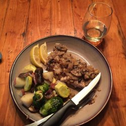 2Cut the mahi mahi into 3 inch long filets. Place the Mahi Mahi fillets over the onions, mushrooms and garlic. Salt and Pepper the first side of the filets to taste. Add white cooking wine and lemon juice.