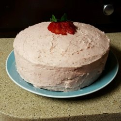 4To Make Frosting: Cream the butter, sugar and the remaining half of the strawberries in a medium bowl until light and fluffy, adding additional confectioners' sugar if needed for a spreadable consistency. Spread the frosting between layers and over the top and sides of cake.