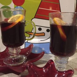 "Gluehwein is a German/Austrian winter-holiday drink that most tourists know as an after-ski drink. After you come in out of the snow, it is supposed to make you glow with warmth again. Watch it: Since you drink this wine warm, the alcohol goes to your head extra quick! Drink when you really have come in, and do not have to go out again! This is the one my father used to make for New Year's Eve."