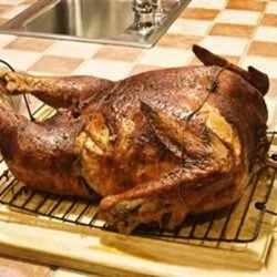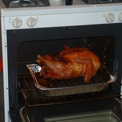 5Roast covered for 4 hours or until the turducken is golden brown. Continue to roast uncovered for 1 hour or until a meat thermometer inserted through the thigh registers 180 degrees F. and a thermometer inserted through the stuffing registers 165 degrees F. Check the turducken every few hours to baste and remove excess liquid. There will be enough pan juices for a gallon of gravy. Carve and serve.