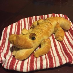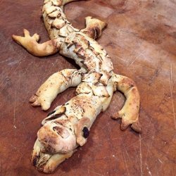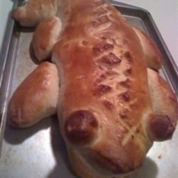 "This simple Italian bread shaped like an alligator will rock any New Orleans Cajun-style Mardi Gras event. You can easily shape it into any animal you like, as this dough lends itself well to handling and doesn't rise uncontrollably and distort your animal's shape. Make the dough in your bread machine, then shape it, let it rise, brush it with egg wash, and bake. To make other shapes, coloring book animals enlarged and placed underneath parchment paper make great guides!"