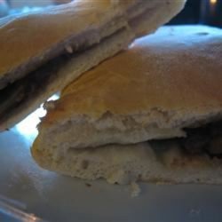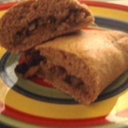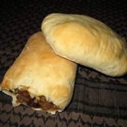 4Punch down the dough and divide into 4 pieces. Roll each piece into an 8 inch round, then spoon the filling into the middle of the dough. Bring the edges of the dough over the filling, and pinch to seal. Carefully roll the dough out into 8-inch ovals and place onto the floured baking sheet. Cover with a towel and allow to rise for 15 minutes.