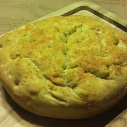 When the dough has risen once in the breadmaker, transfer it into an oiled, 8 inch, round baking tin. Allow to rise until doubled in bulk.