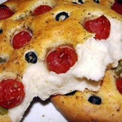 2In a large bowl, sift together flour and salt; stir in yeast. Add olive oil, warm water, and chopped sun-dried tomatoes; mix well. Knead on a lightly floured surface until smooth and elastic, about 5 minutes. Cover dough and let relax for 10 minutes.