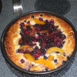"Easy to make, and oh so good. You can use frozen or canned fruit of your choosing, as well as fresh. The crust rises to the top while baking. A family favorite! If preferred, use water instead of fruit juice."
