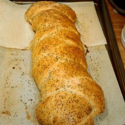 "A perfect recipe for arthritic hands that can't knead dough easily anymore! Recipe is written for a bread machine that makes 1.5 pound (700 gram) loaves. NOTE: Do NOT bake this dough in the machine. Use only the dough/pasta setting. There is too much fully-risen dough for the machine to accommodate. "