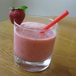 In a blender combine strawberries, orange juice, yogurt, ice and banana. Blend until smooth.