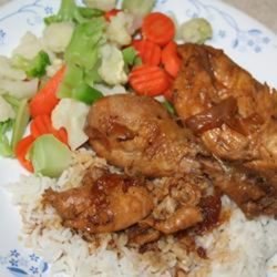 "This classic adobo recipe is simple to make and famous with all who have tasted it. It has been modified to be a bit more saucy than traditional adobo, it is delicious served over rice."