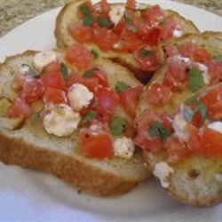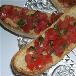 3Slice the bread. On a baking sheet, arrange the slices in a single layer. Brown both sides of the bread slightly in the oven. Remove the slices from the oven. Spread the tomato mixture on the slices. Broil 2 to 3 minutes, or until the mixture is hot but not cooked.