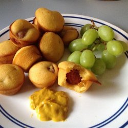 3Whisk flour, corn meal, sugar, baking powder, and salt in a bowl; stir in milk, egg, and vegetable oil to make a smooth batter. Stir chopped hot dogs into batter and spoon the mixture into prepared mini muffin cups.