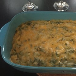 5To the milk mixture add the Cheddar cheese, mixing well to melt. Stir in spinach. Pour mixture into a 9x13 inch casserole dish and sprinkle with Monterey Jack cheese.