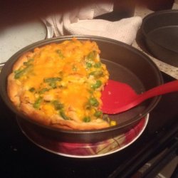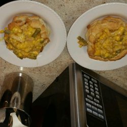 4Mix chicken and with cream of chicken soup, mixed vegetables, and half the Cheddar cheese in a bowl. Spoon a heaping tablespoon of chicken, vegetables, and sauce into each dough cup and top each with 1 1/2 teaspoon of remaining Cheddar cheese.