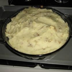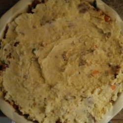 4Pour beef and vegetable mixture into prepared baking dish. Cover with mashed potatoes.