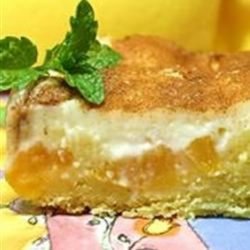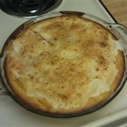 2Combine flour, pudding mix, margarine, egg, and milk; beat well. Pour into a greased 8 or 9 inch pie pan. Arrange drained peaches on top of mixture, just to edges.