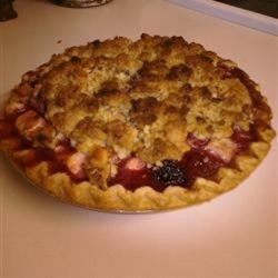 2Peel, core, and slice the peaches, apples, and pear. Place the fruit into a large bowl and add the raspberries. In a separate bowl, mix the white sugar, cinnamon, and 3 tablespoons flour. Pour the mixture over the fruit and gently toss the fruit to coat.