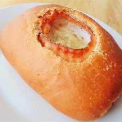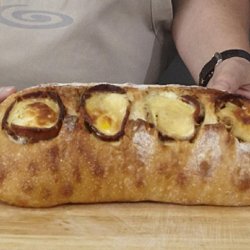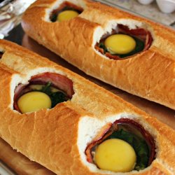"I was inspired by this simple recipe consisting of making holes in a loaf of Italian country bread and putting eggs in it. I decided to make it a little differently using bacon and spinach. This recipe appears on an episode of the Dinner Spinner TV Show on The CW!"