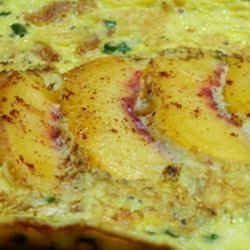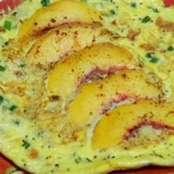 3Reheat bacon grease over medium high heat. When grease is hot, pour egg batter into pan. Arrange peach slices on top of egg batter. Cover and cook over medium heat for 1 minute. Uncover and cook until set. Sprinkle with paprika. Let cool slightly before serving.