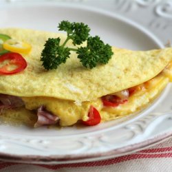 3Pour the prosciutto mixture over one half of the egg; top with Cheddar cheese. Lift the opposing half of the egg with a spatula and fold over the filling. Continue to cook until the cheese melts, about 2 minutes more.