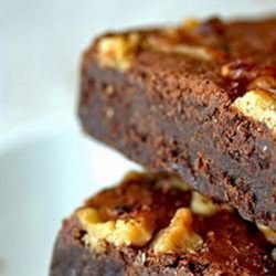 2Melt the butter or margarine over low heat. Pour into large mixing bowl and stir in carob powder, sugar, salt, flour, and vanilla. Mix in egg whites and walnuts. Spread the dough evenly into the baking pan.