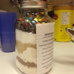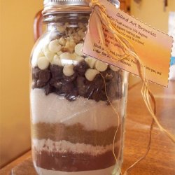 2Attach a decorative tag to the out side of the jar with the following directions: Sand Art Brownies: 1. Preheat oven to 350 degrees F (175 degrees C). Grease one 9x9 inch square baking pan. 2. Pour the contents of the jar into a large bowl, and mix well. 3. Stir in 1 teaspoon vanilla, 2/3 cup vegetable oil, and 3 eggs. Beat until just combined. 4. Pour the batter into the prepared pan, and bake in the preheated oven for 25 to 30 minutes.
