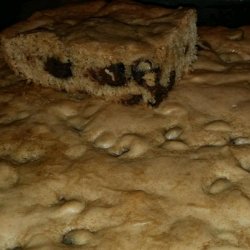 2In a medium bowl, mix together the melted margarine, brown sugar and white sugar until smooth. Beat in the eggs one at a time, then stir in the vanilla. Combine the flour, baking powder, and baking soda , gradually stir into the creamed mixture. Spread evenly into the prepared pan, and sprinkle the chocolate chips and pecans over the top.