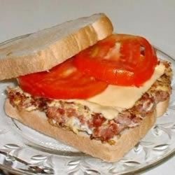 2Place the egg and meat onto one slice of the bread and top with cheese and tomato if desired. Place the other piece of bread on top. Bread can also be toasted first.