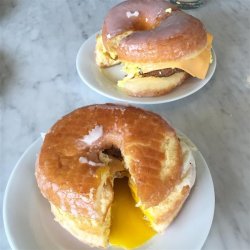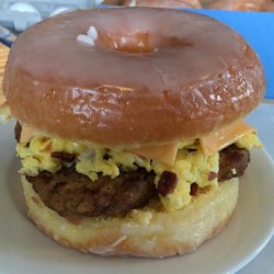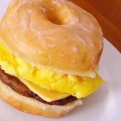 "Sausage, egg, and cheese on a glazed donut. Bacon bits and veggie sausage patties are also acceptable for a slightly healthier option if you could ever consider this healthy."