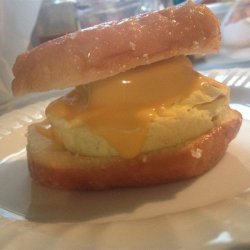 4Sandwich the cooked egg, sausage, and cheese between the donut halves.