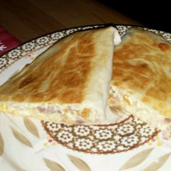 3When the eggs are finished, heat tortillas in the same skillet until warmed through. Place one tortilla on a plate and top with egg mixture and shredded cheese. Top each serving with 1 tablespoon each guacamole and sour cream.