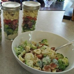 "This is an excellent pasta salad that is great to make for the week ahead or to bring to potlucks! Make it -- you won't be disappointed. You may frown at the coleslaw dressing, but trust me, it's amazing in this recipe! This recipe is highly requested when served."