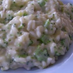 4Mix together broccoli, soup, rice, onion, butter or margarine, and cheese. Season with salt and pepper to taste. Place in a 9 by 13 inch oven proof dish.
