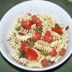 2In large bowl, stir together oil, vinegar, garlic, basil, and salt and pepper. Toss with warm macaroni to coat well. Toss with Parmesan. Cover, and refrigerate 2 to 3 hours.