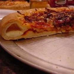 5Arrange 8 sticks of cheese, ends touching, around the edge of 1 pan. Fold overhang over cheese and press dough to seal. Repeat with second pan.