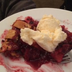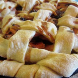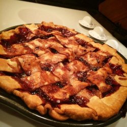 3Line a 9-inch pie dish with a crust. Place apples and remaining blackberries into crust. Cut remaining crust into strips about 1 inch wide. Weave pie crust strips into a lattice crust on top of the pie; pinch ends of strips to edge of bottom crust to seal. Spoon hot blackberry sauce over pie, letting it soak through the openings in the top crust. Place pie onto a baking sheet to catch drips.