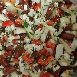 "A tasty, nutrient-packed salad that can be eaten by itself or as a side dish. Makes a great lunch the next day too! Add more lemon juice and olive oil if you like your salad to have a lot of dressing. Use garbanzo beans in place of kidney beans if you prefer."
