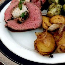 3In a saucepan, melt butter with lemon juice, garlic powder and 1 cup of the wine. Drizzle about 1/4 of the butter mixture over the lobster. Tie the tenderloin with kitchen string. Rub tenderloin with olive oil and place in a roasting pan. Pour remaining wine in bottom of pan. Sprinkle with cracked pepper.