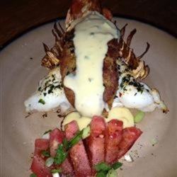 3In a saucepan over medium heat, combine the cream of shrimp soup, milk and cheese. Cook and stir until cheese has melted. Pour over the stuffed lobster tails. Top with any stuffing mixture that you may have left over.
