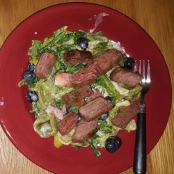 "A well-balanced meal in a bowl! Goes well with a nice slice of Italian or French bread. This is a FAVE to take to work or school for lunch with both my teenaged daughters and son! I vary how much meat, pasta, and salad I use depending on how many servings I need. If you want to make it in advance or have leftovers, don't add the dressing and croutons beforehand. Mix croutons right before packaging and send dressing on the side. I make this whenever I have leftover steak!"