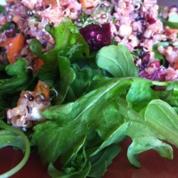 "Quinoa has a light, fluffy texture when cooked, and can be used as an alternative to white rice or couscous in most dishes. The arugula has a rich peppery taste, and has an exceptionally strong flavor for a leafy green which goes well with the slightly nutty flavor of the quinoa."