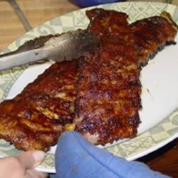 "This is an easy recipe for ribs which won't be tough, like smoked ribs, or fall off the bone, like braised ribs. These ribs are done the right way, and I've never had better ribs than this."