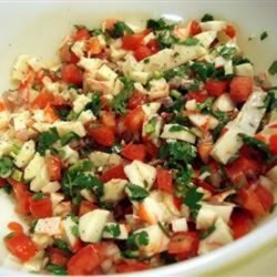 "This has always been a crowd pleaser in my home. This is wonderful as an appetizer served on tostadas or even with tortilla chips. Make sure to refrigerate before you serve, it tastes best when very cold. I like to serve on tostadas with a thin layer of mayonnaise for a nice refreshing lunch."