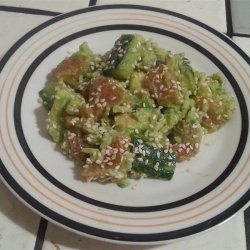 "A delicious, light, spicy salad, excellent for summer cooking! A perfect side to any grilled Asian-style dishes. Wasabi paste may be used instead of the powder if it is more convenient. If you discover you have made the dressing too spicy, adjust by adding more mayonnaise."