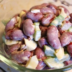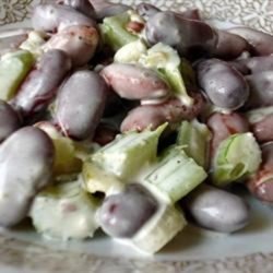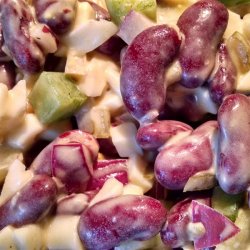 2In a bowl, mix the hard-cooked eggs, kidney beans, onion, celery, relish, and mayonnaise. Season with salt and pepper. Chill at least 1 hour in the refrigerator before serving.