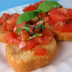 "Shallots are the special ingredient in this easy, filling bruschetta. The tomato mixture tastes best when prepared ahead of time and chilled for approximately 1 hour."