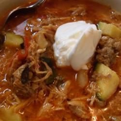 "Spicy sausage and tender chicken make a tasty pair in this creamy soup. Packed with tons of flavor and so simple to make! Searing is the trick for tender chicken. Be sure to sprinkle parmesan on top before serving, it definitely adds a little sumthin' sumthin'!"