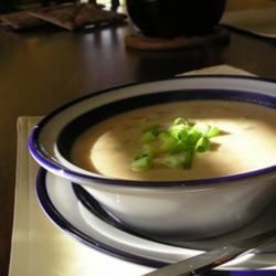 Remove from heat and add the flour and peanut butter, stirring until melted. Once melted gradually stir in chicken broth.