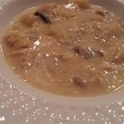 "This is a good recipe for a busy people. You can put it in the crock pot and it will be ready after work. (To make it on the stove instead, cook over low heat until rice and potatoes are tender, then add the milk and flour and heat until thickened.)"