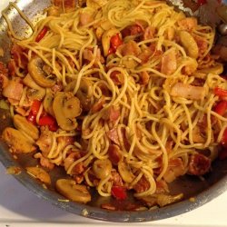 1Fill a large pot with lightly salted water and bring to a rolling boil over high heat. Once the water is boiling, stir in the spaghetti, and return to a boil. Cook the pasta uncovered, stirring occasionally, until the pasta has cooked through, but is still firm to the bite, about 12 minutes. Drain well in a colander set in the sink.