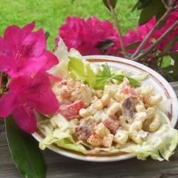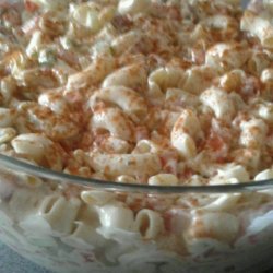 1Place bacon in a large, deep skillet. Cook over medium high heat until evenly brown. Drain, crumble and set aside. Bring a large pot of lightly salted water to a boil. Add the macaroni pasta, and cook until al dente, 8 to 10 minutes. Drain and rinse with cold water.
