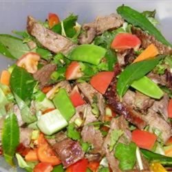 2Cook the steak over high heat on a preheated grill for approximately 4-6 minutes on each side, until it is cooked medium. Do not overcook the meat! Remove from heat and slice into thin strips. Add the meat and its juices to the sauce and refrigerate, tightly covered, for at least 3 hours.